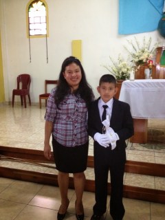 La comitiva de entrada fue toda una procesión: el sacerdote, seis acólitos luciendo grandes galas-si, seis!- los tres comulgantes, media docena de ministras de la eucaristía y una pequeña vistiendo de repollito rosa, quien no sé a ciencia cierta si era parte oficial del grupo, o le gustó eso de entrar en caravana.