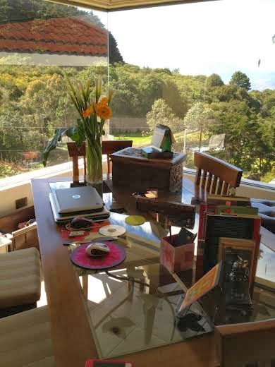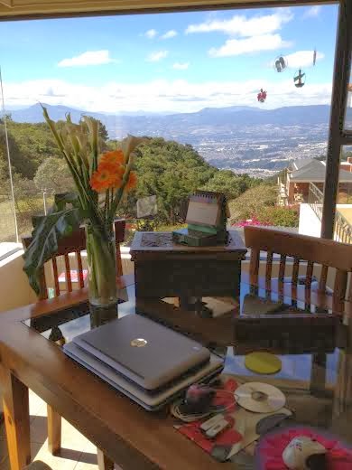 Poseo un milagro cotidiano, un paraíso de seis metros cuadrados abrazados por una pared y dos ventanas grandes como ojos moros. Son mi mirada al horizonte, el palco donde converso con el volcán de Agua y sus colosos hermanos. La visita permanente de un bosque anciano y la vespertina de una ciudad de Guatemala que cada tarde despierta vestida con sus luces urbanas. Es mi estudio, ese ambiente sin puerta y sin llaves que alberga mis libros, tres muebles forasteros el uno para el otro y mi sensación de ser la habitante de un santuario.