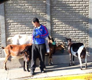 Ayer vi un rebaño de aquel pasado, después de media vida. Aunque cuarentones rascando el medio siglo, dentro nuestro habita un niño perpetuo, quien despierta y se alborota si reencuentra asuntos del pasado muy pasado. Como estas cabritas de todos colores, como los latigazos de su pastor sobre el asfalto, anuncio del choque profundo entre verdades rurales y verdades urbanas.