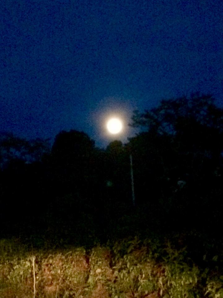 La luna me siguió por el camino que conduce de mi trabajo a casa. Esta noche nos observa de cerca, como si no quisiera subir muy alto. Trae un color mostaza claro, y una falda de nubes que se mueven. Acaso conoce esta luna mágica de tribulaciones y quebrantos y cansancio. Adivina también sueños y alegrías. Como sea, su llegada rasga el uniforme cuadriculado de la rutina. Un pequeño regalo para todos.