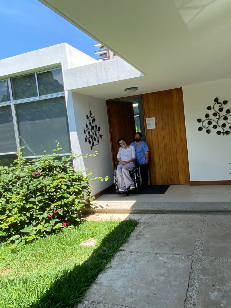 Cada metro que dibuja la distancia es una decisión, un antídoto contra el peligro. La verja, como si fuera frontera, representa un centinela que advierte hasta dónde podemos llegar. Aguardamos de pie, en la calle, un poco impacientes, tal vez. Desde nuestra posición fronteriza, detrás del rigor de las mascarillas y del centinela de hierro, la vemos aparecer. Asoma con su rostro engrandecido por la sorpresa, con sus manos que hablan y el cabello casi largo a pulso de pandemia. Una enfermera empuja su silla de ruedas. La coloca para nosotras justo en el umbral de la puerta, bajo un bañito de luz. Es mediodía.