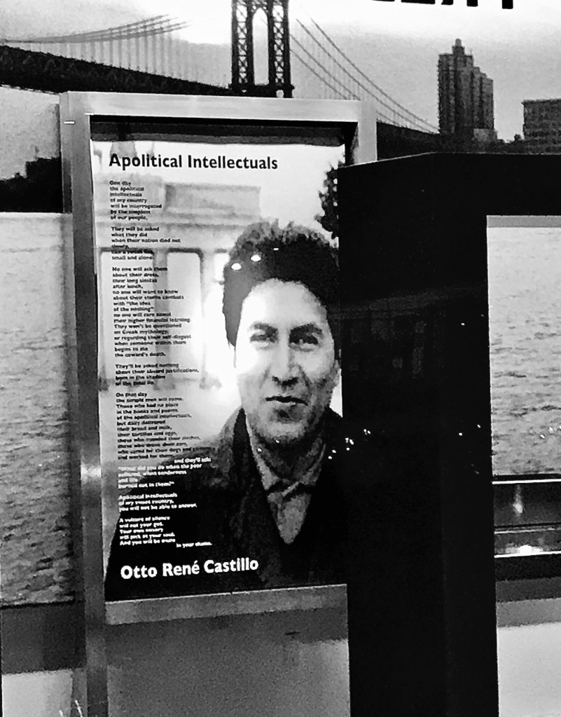 Una gigante y hermosa fotografía de Otto René saludaba desde el vestíbulo, a su lado un poema suyo traducido al inglés.